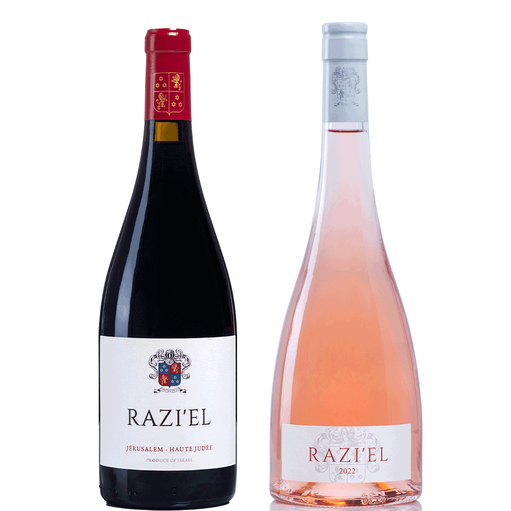 זוג יינות מבית יקב רזיאל (של קסטל). נהדר לשניים עם טעם שונה ביין. העדפה מצד אחד לרוזה והעדפה של בן או בת הזוג לאדום 💝😊