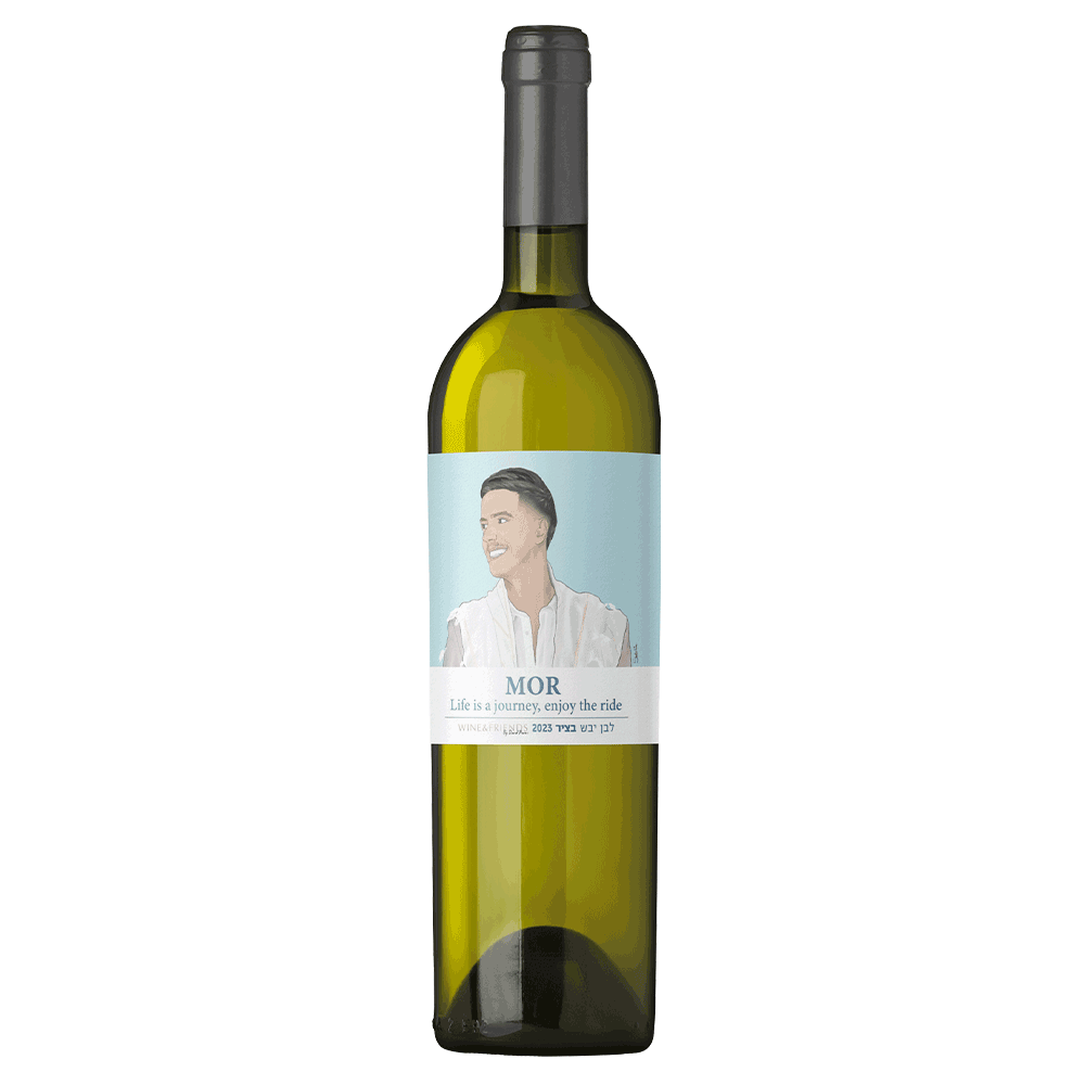 חמישה בקבוקי יין שונים לזכר מור מאיר טרבלסי. 2 יינות אדומים, 2 לבנים ואחד רוזה.