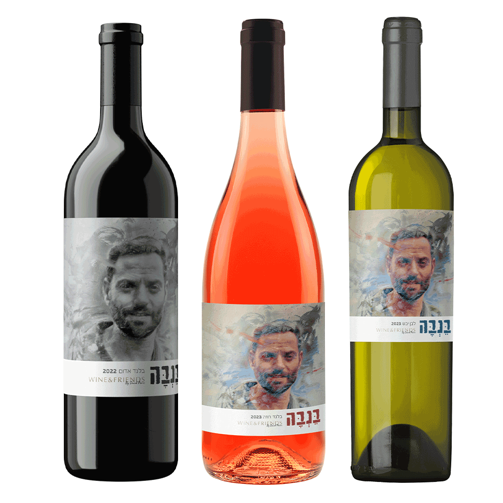 שלושה בקבוקי יין שונים לזכר אל"מ יצחק בן בשט, בֵּנְבָּה.