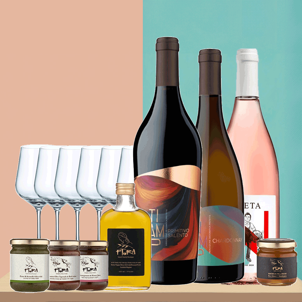 • שש כוסות יין קריסטל: כוסות יוקרתיות שיוסיפו מגע של אלגנטיות לכל לגימה, ומשדרגים את המתנה.