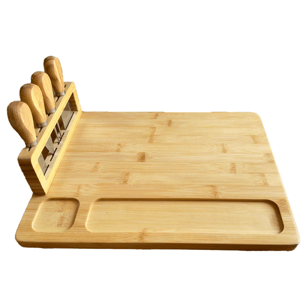 מגש עץ לגבינות, עץ במבוק עם ערכת סכינים