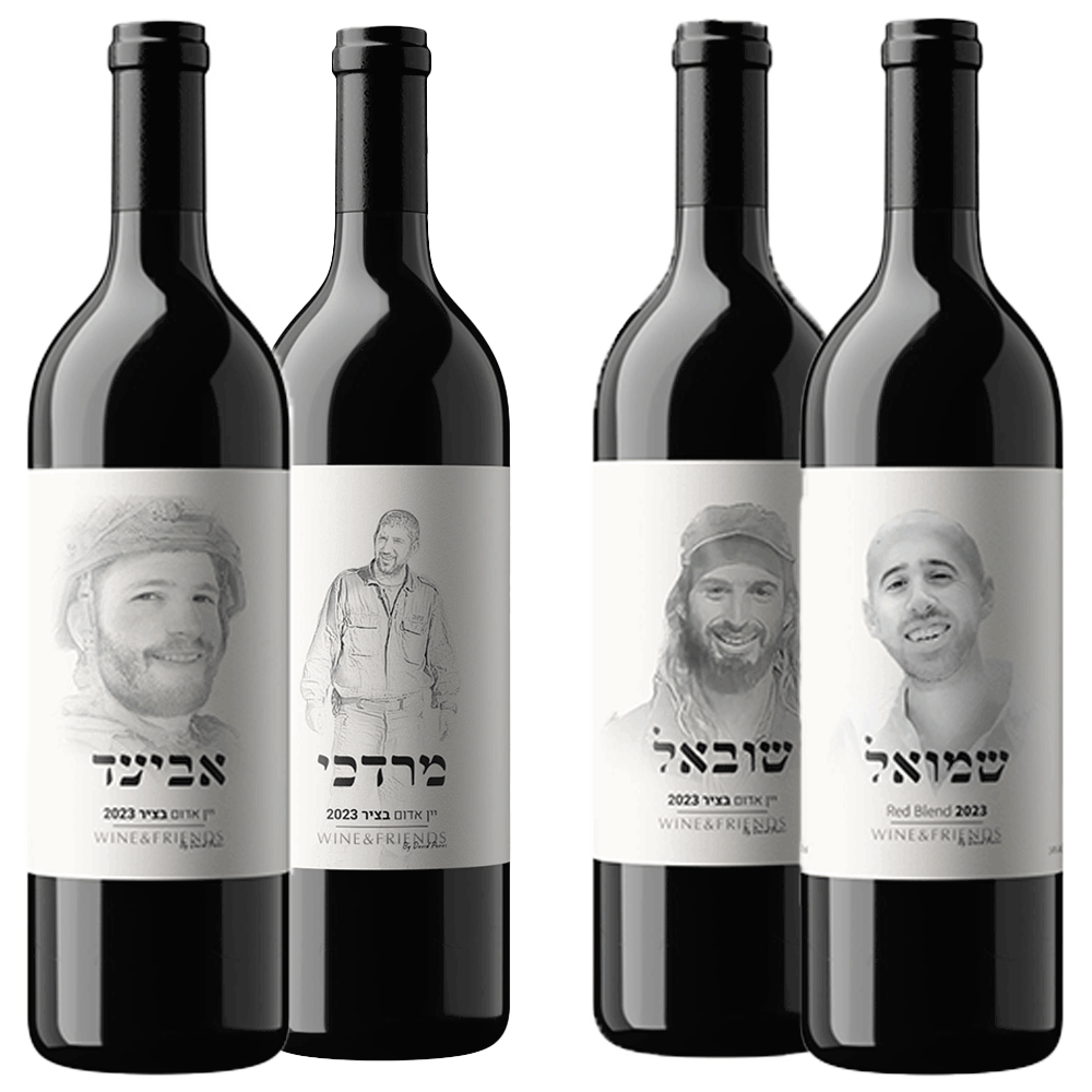 ארבעה בקבוקי יין אדום, אשר יצאו בשיתוף המשפחות והפלוגה לזכר ארבעת חיילי מילואים שנפלו בקרב בלבנון במלחמת חרבות ברזל.