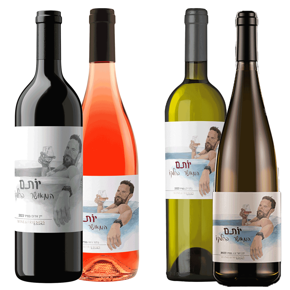 ארבעה בקבוקי יין שונים לזכרו של רס"ן יותם פלד.