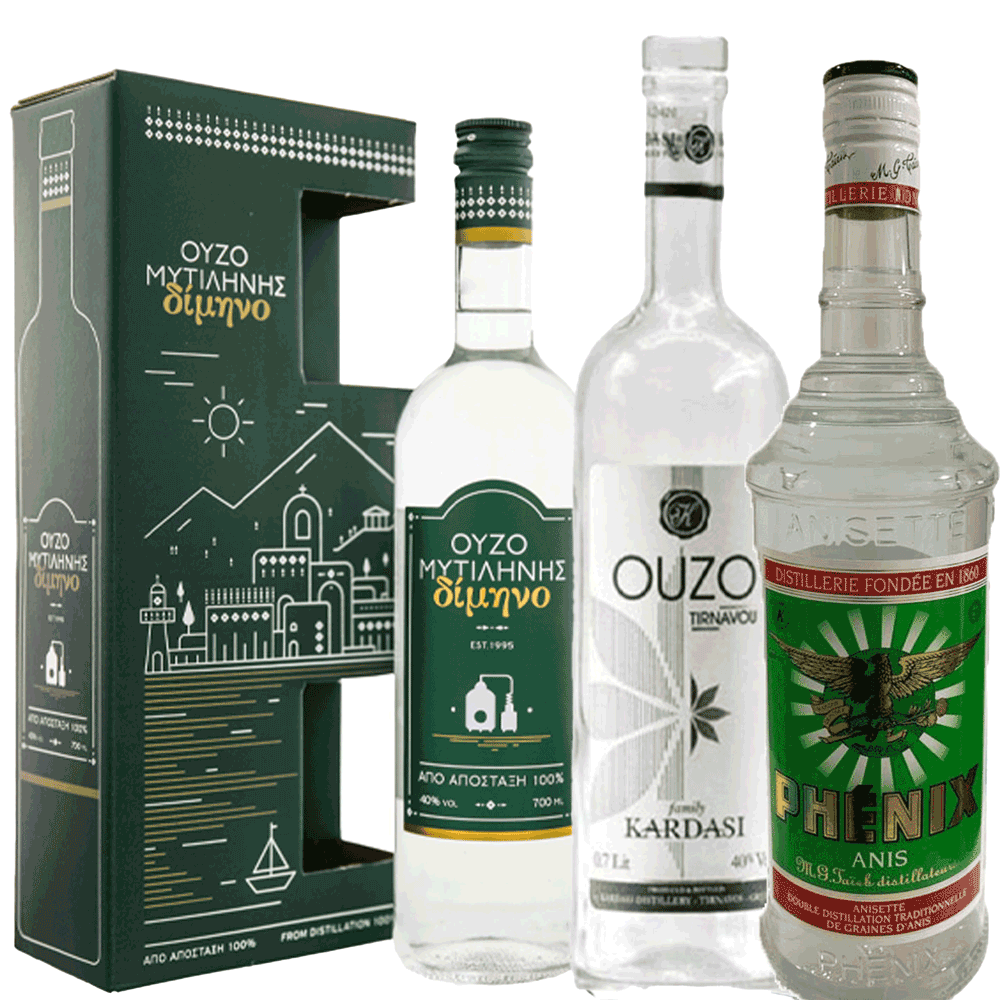 3. אוזו דימינו-מיוצר מזרעי אניס ותבלינים המגיעים בעיקר מהאי לסבוס, ללא תוספת סוכר ומיושן לתקופה של חודשיים, זהו אוזו עדין ומאוזן בעל סיומת טעם ארוכה וטעמי אניס בולטים, מלווים במעט מליחות וג’ינג’ר. 700 מ"ל. 40% אלכוהול. לאוזו מצורפות שתי כוסות זכוכית.