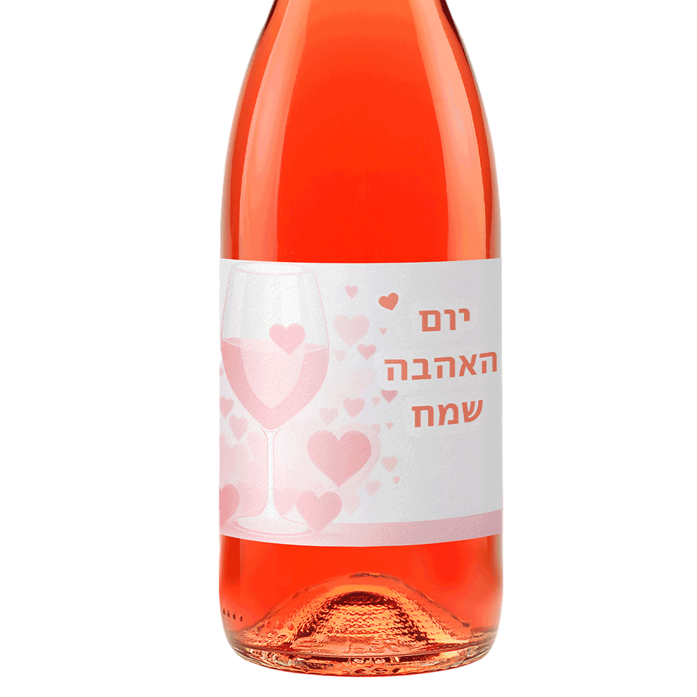 תווית אישית ליין – יום האהבה כוס יין ולבבות