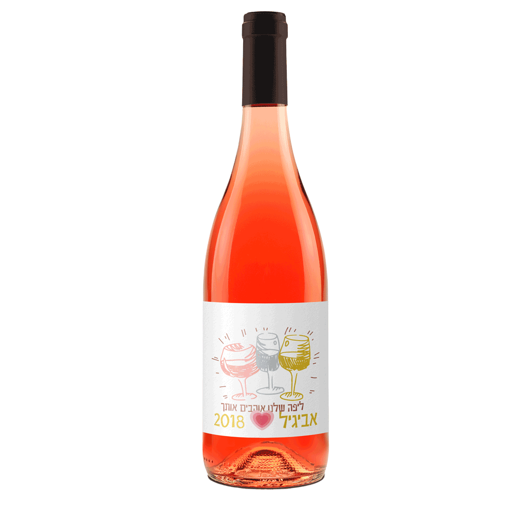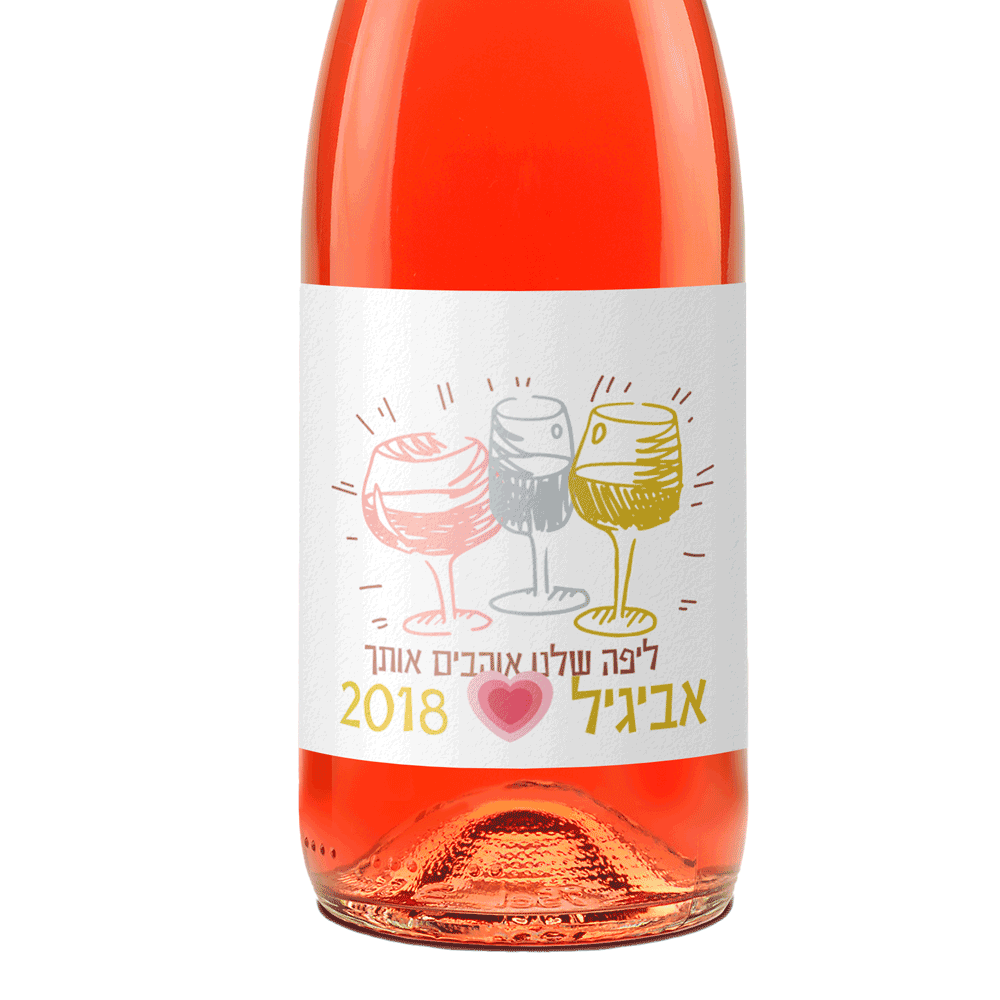 המסר האישי אותו אתם מעוניינים שיופיע, יחליף את המילים על התווית "ליפה שלנו אוהבים אותך" ואת שם היין "אביגיל 2018".