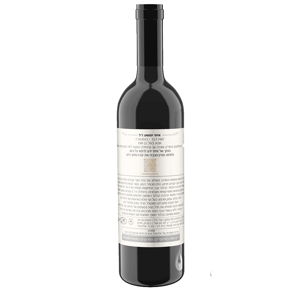 Itai Yehoshua est tombé le 7 octobre 2023. Un père, mari, fils et frère, Itai était un combattant de la réserve dans le commandement de la division 36 et dans l’unité de sécurité de la Matkal. Le sourire d’Itai savait guérir toute douleur. En savourant ce vin, honorez sa mémoire avec un large sourire.